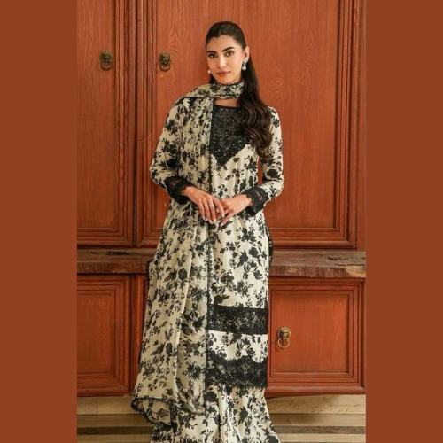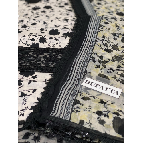 •Printed Chiffon Dupatta with 4 side embroidered 9mm sitara lace