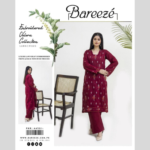Bareeze EMBROIDERED Lawn 2pc dark mahroon