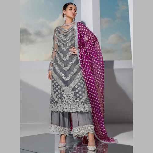 * DUPPATTA: ORGANZA FULLY EMBROIDERED WITH 4-SIDE EMBROIDERED BORDER